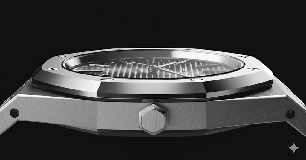 Cette Seiko Mod inspirée du style Royal Oak se distingue par son boîtier octogonal aux lignes nettes et équilibrées.